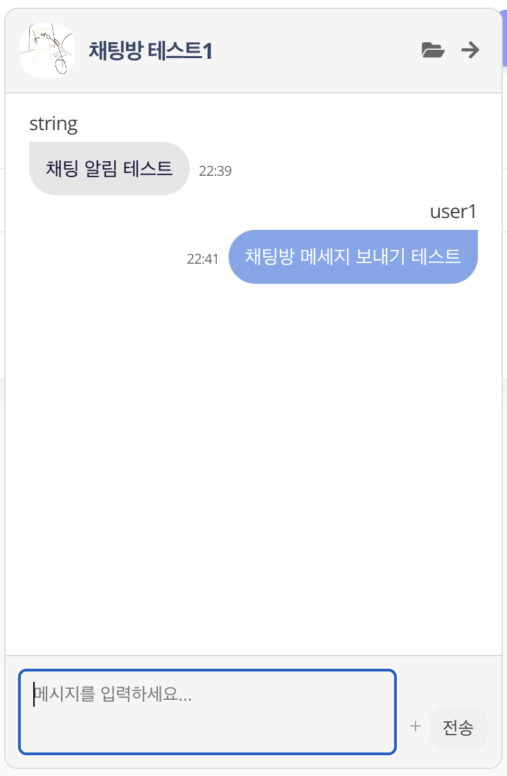 const props = defineProps({ chat: { type: Object, required: true, }, showChatRoom: { type: Boolean, required: true }, messages: Array, stompClient: Object }); const sendMessage = async () => { if (!newMessage.value || newMessage.value.trim() === "") { return; } const message = { memberId: loggedInMemberId.value, nickname: loggedInMemberName.value, message: newMessage.value, }; props.stompClient.send(`/pub/chat/${props.chat.chatRoomId}`, {}, JSON.stringify(message)); scrollToBottom(); newMessage.value = ''; };- 부모 컴포넌트에서는 웹소켓과 채팅방 구독 관련한 모든 로직을 처리하고, 하위 컴포넌트인 채팅방에서는 stompClient에 대한 정보를 props로 전달받았다.
