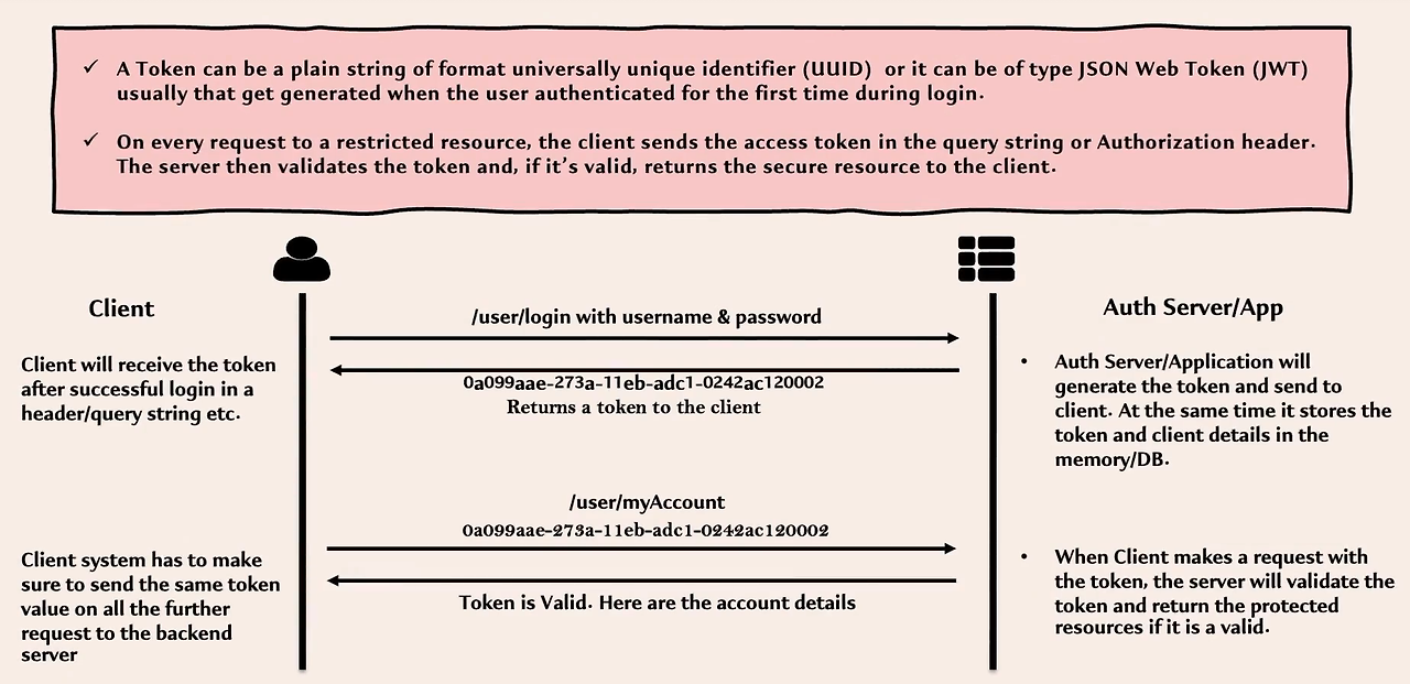 - 토큰 생성 후 클라이언트 애플리케이션은 보안 api에 접근할 때마다 해당 토큰을 포함하여 요청 전송