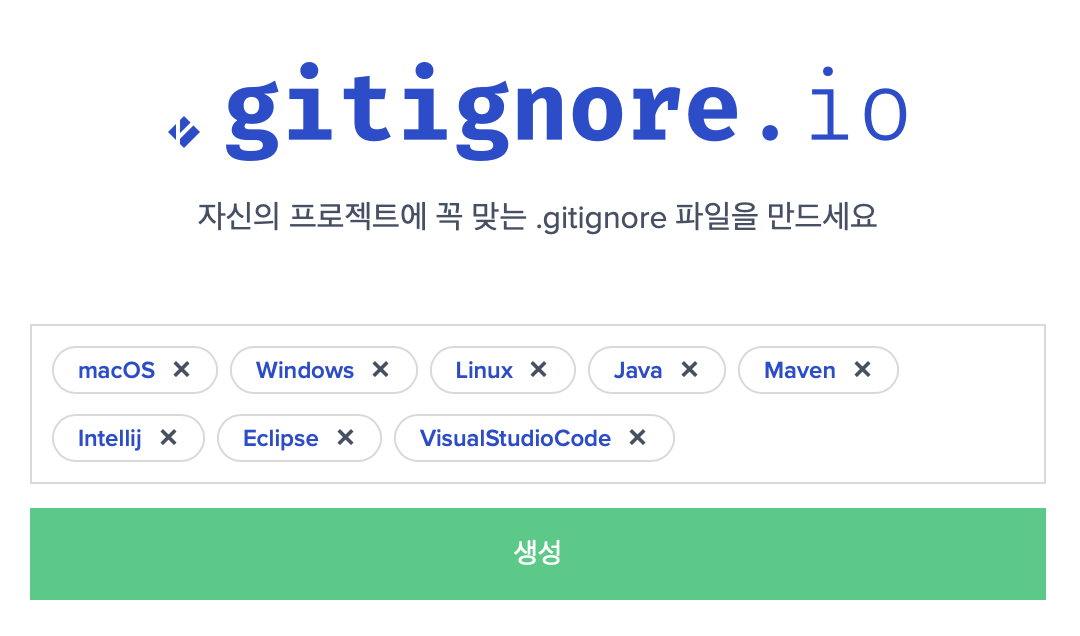 - Toptal -> gitignore.io: 키워드를 입력하여 .gitignore 파일을 자동 생성 가능