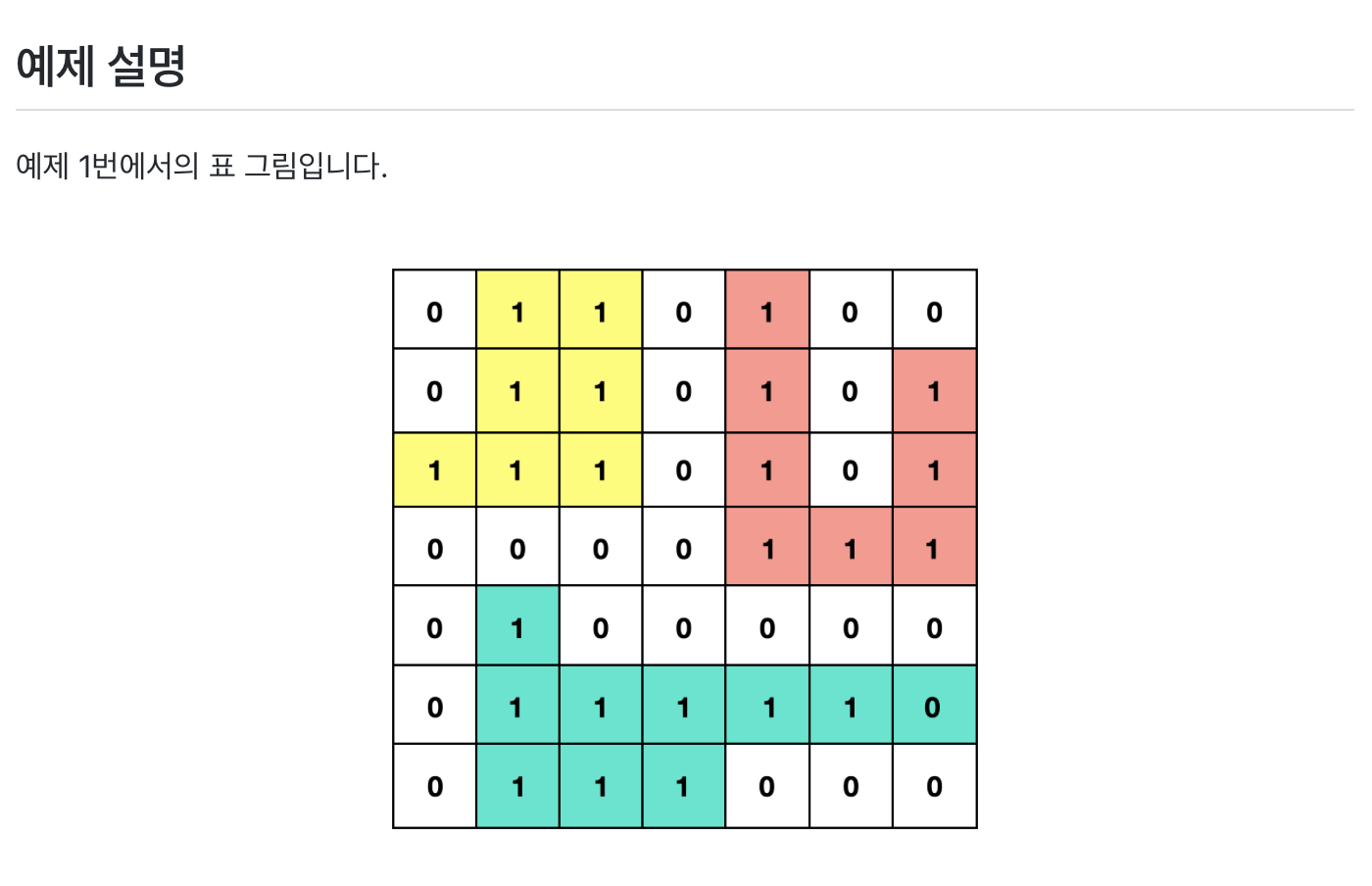 1이 주어진 칸끼리 변을 공유하고 있다면 그 칸은 연결되어있다고 합니다.