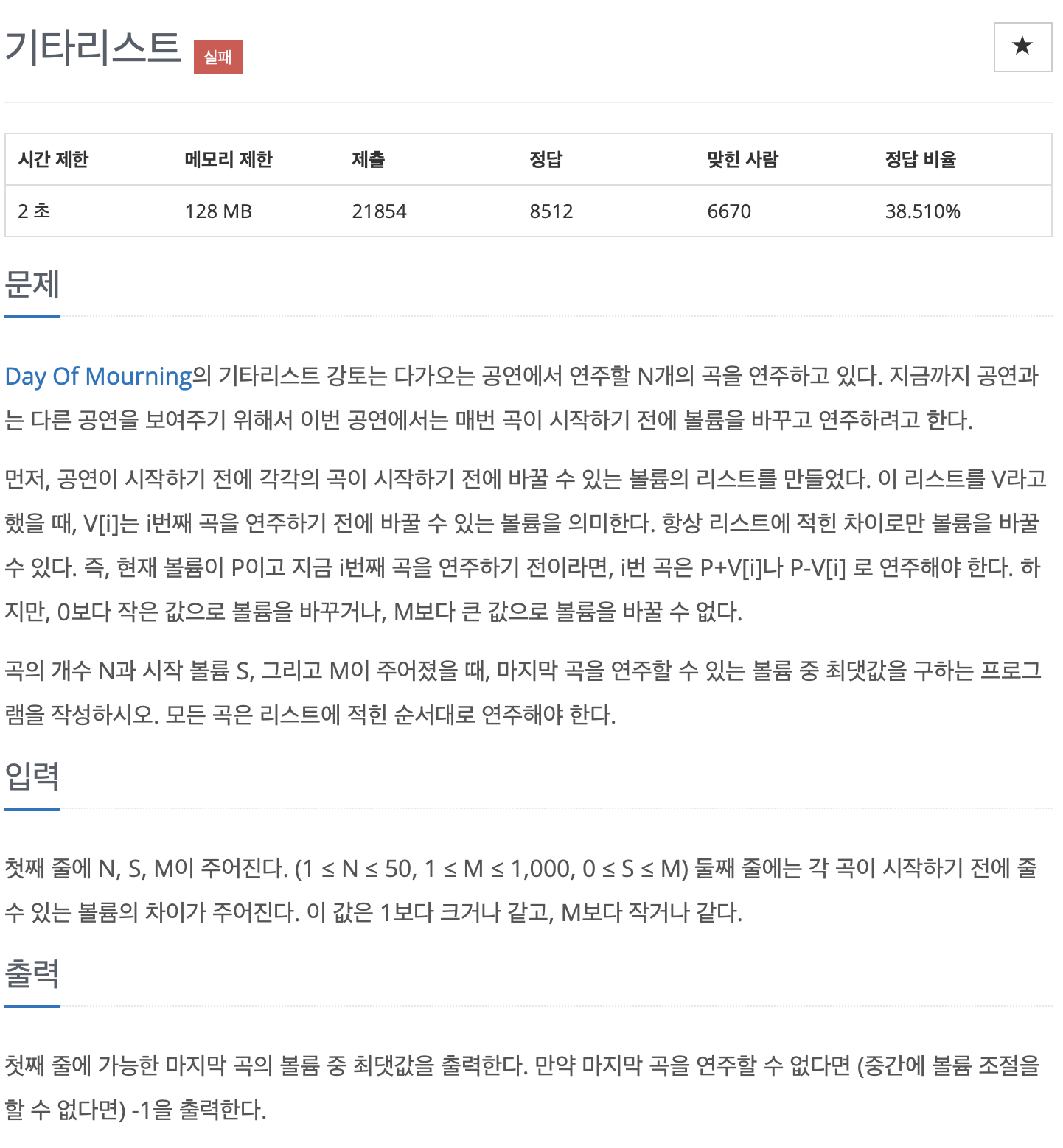 - n = 곡의 개수, s = 시작 볼륨, m = 주어진 최댓값